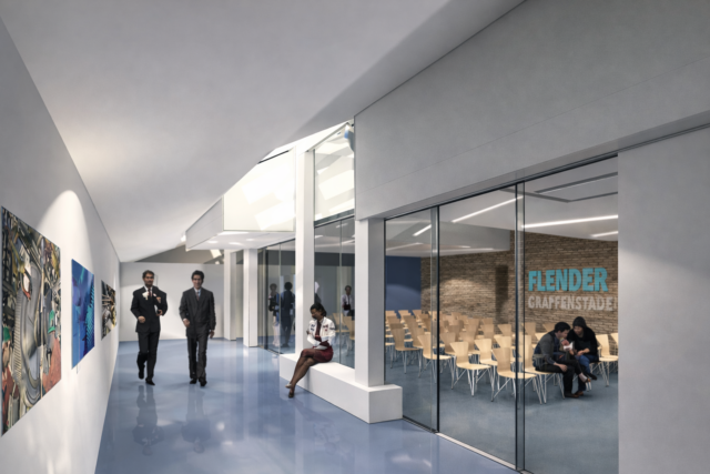 Le projet prend naissance dans le bâtiment existant mais fini par « sortir du cadre » et se développe comme une entité propre qui vient envelopper partiellement l’existant afin de tisser ce lien étroit entre passé, présent et futur.
